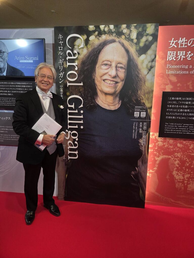 思想・芸術部門受賞者キャロル・ギリガン氏のパネル前にて。敬意を表して。