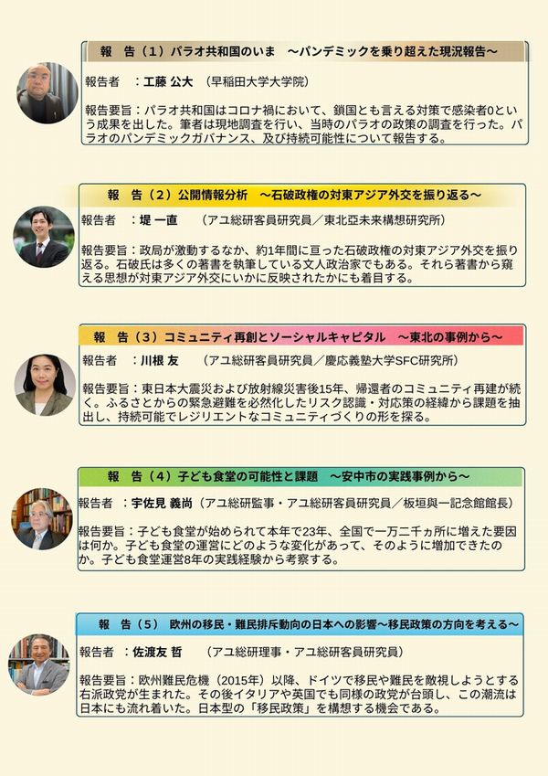 アユ総研客員研究員発表会・要旨と報告者プロフィール画像