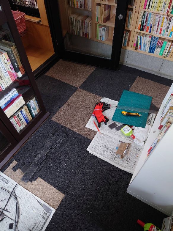 板パリの上にカーペットを敷き